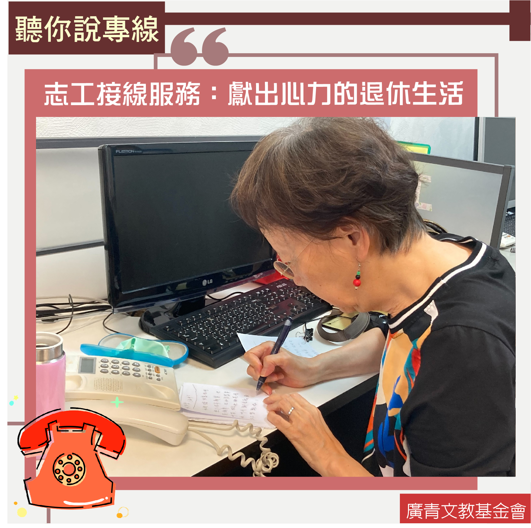 已經退休的志工高姊平和地說道:「其實我有來接線也會感覺開朗一點,不然一直在家裡也很無聊。」