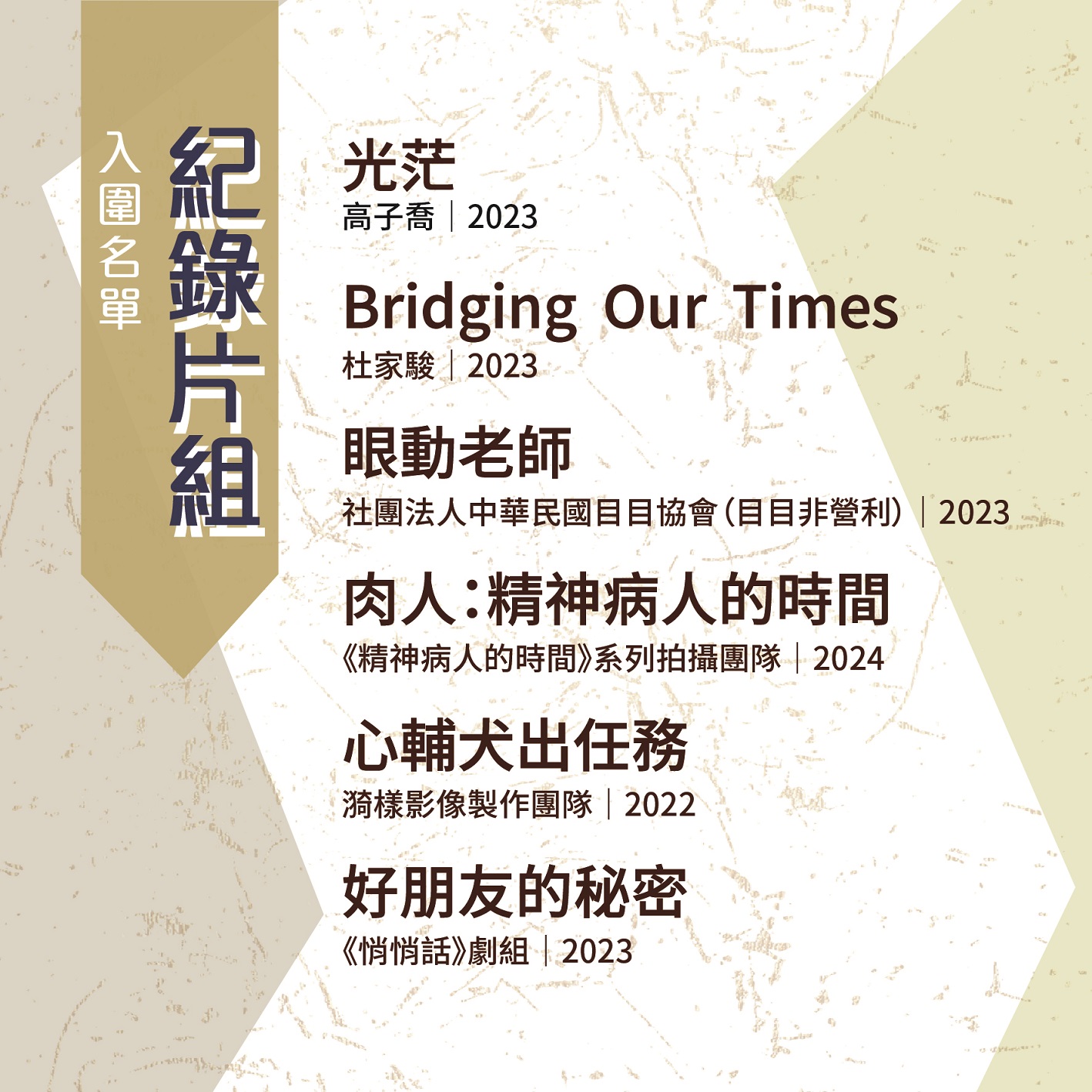🎥 紀錄片組入圍作品