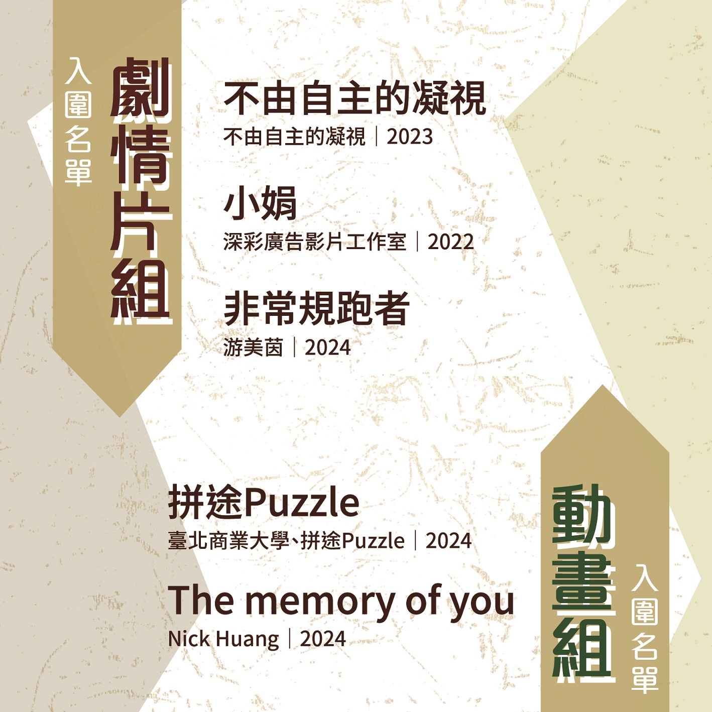 🎬 劇情片組入圍作品